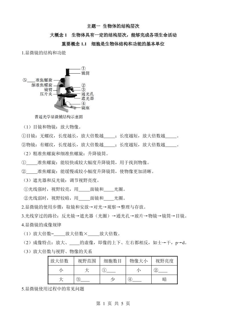 主题01 生物体的结构层次(重要概念)