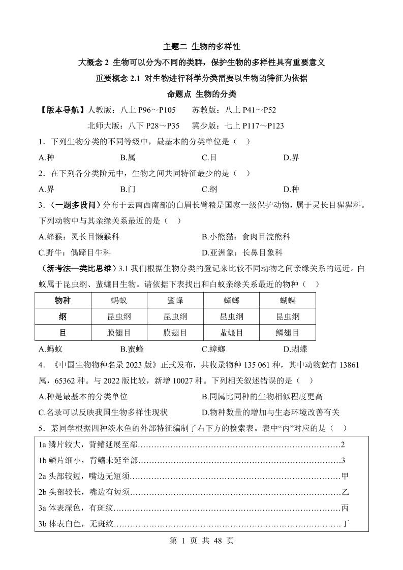 主题02 生物的多样性(练习)