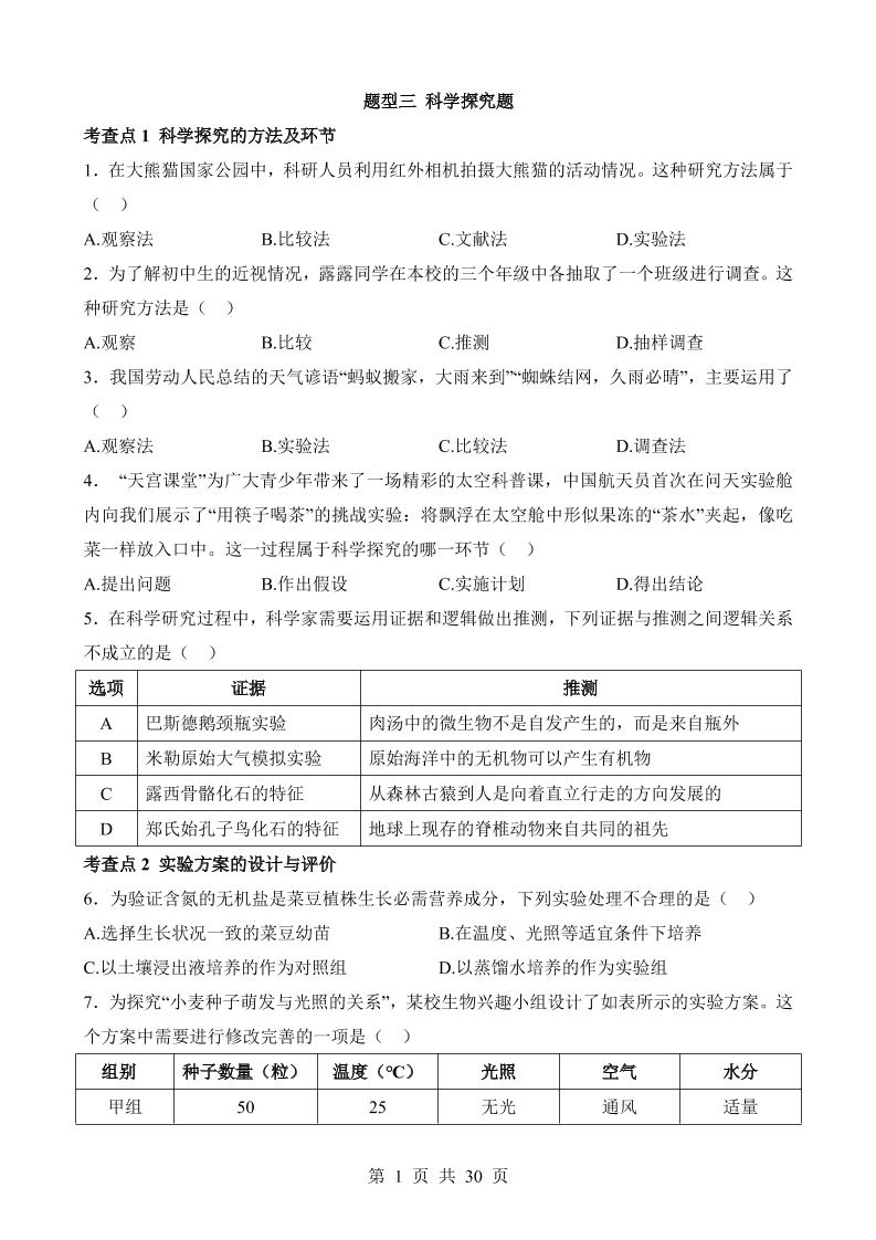 题型03 科学探究题(练习)