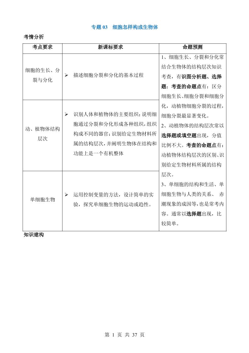 专题03 细胞怎样构成生物体(讲义)