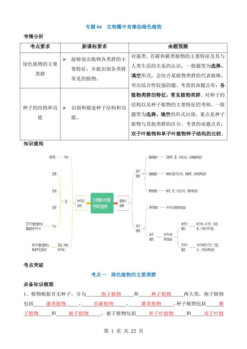 专题04 生物圈中有哪些绿色植物(讲义)