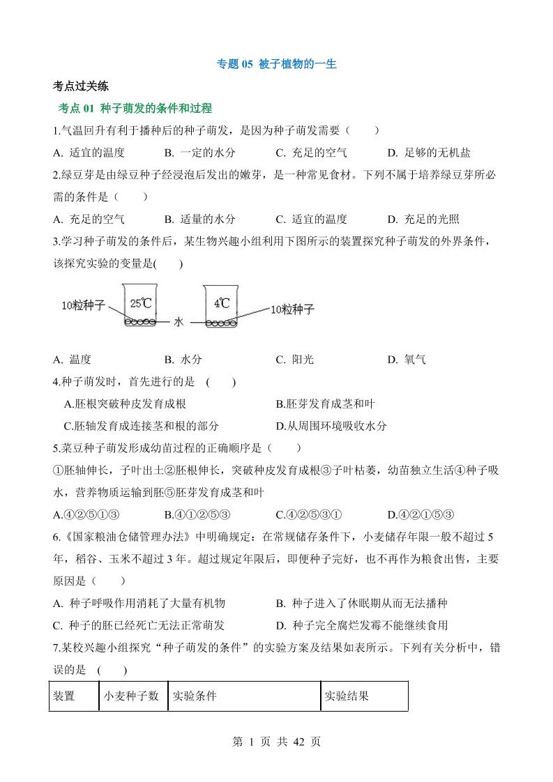 专题05 被子植物的一生(练习)