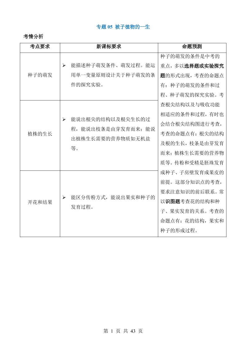 专题05 被子植物的一生(讲义)