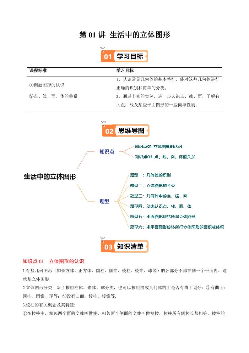 第01讲 生活中的立体图形(原卷版)