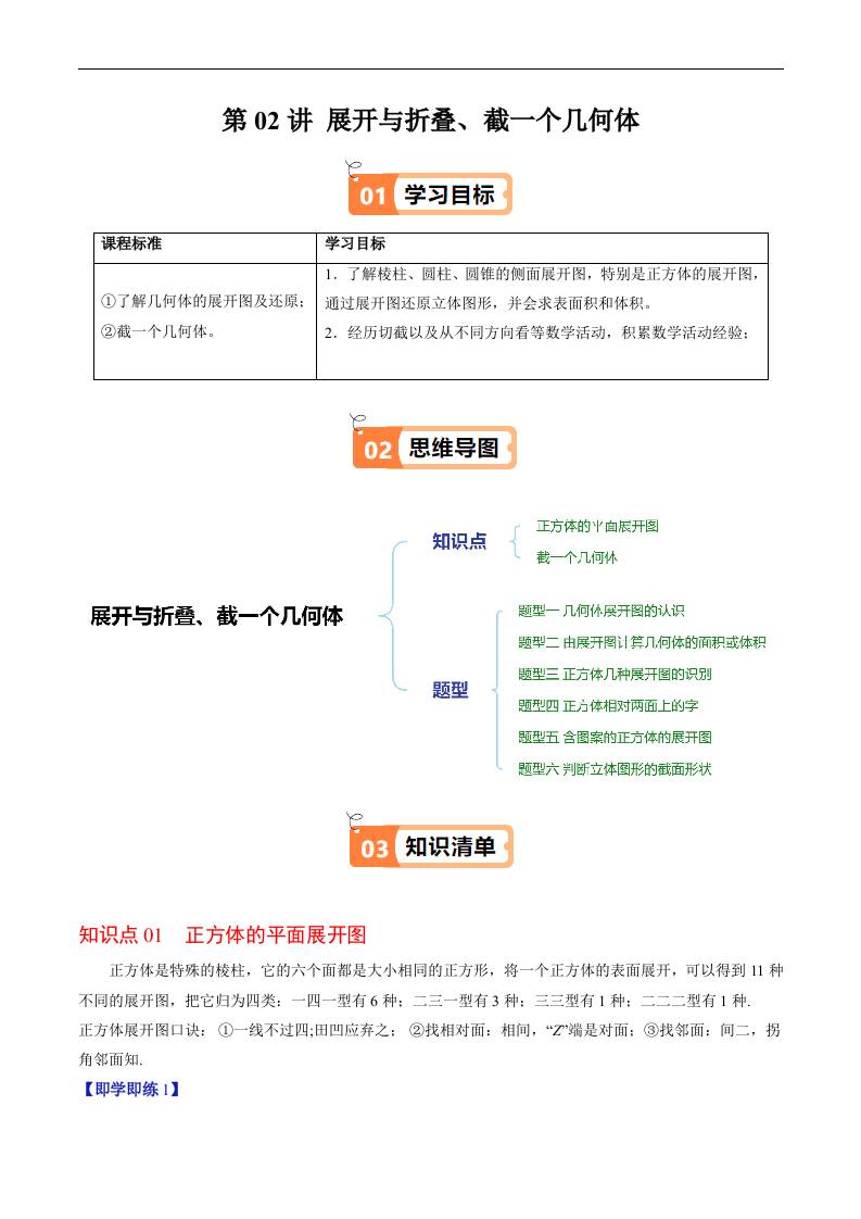 第02讲 展开与折叠、截一个几何体(原卷版)