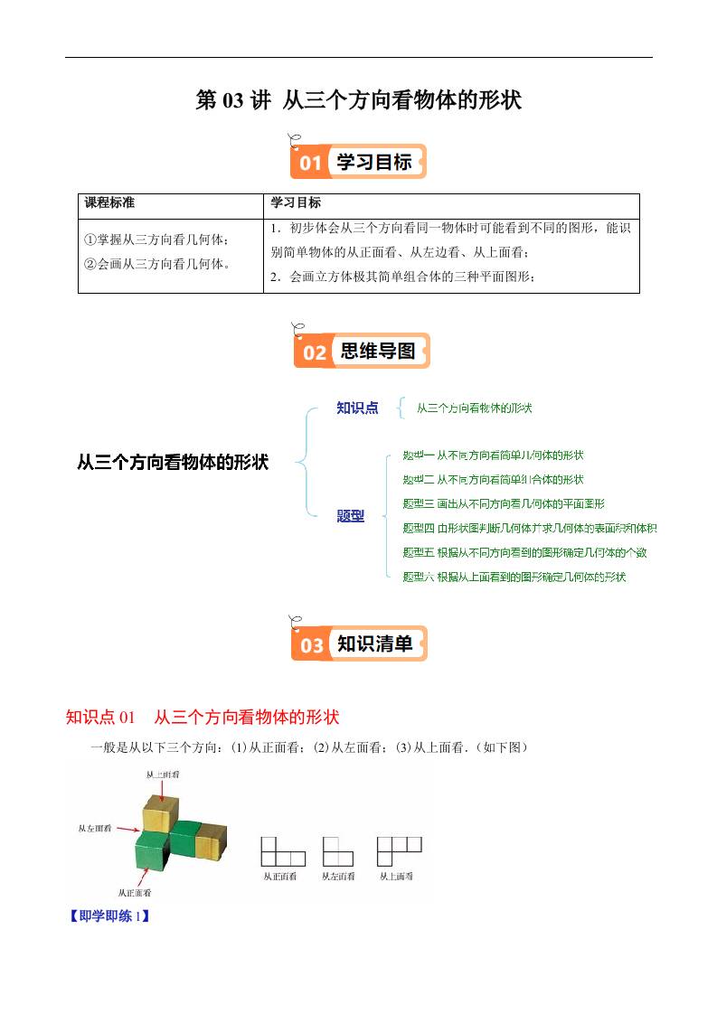 第03讲 从三个方向看物体的形状(原卷版)