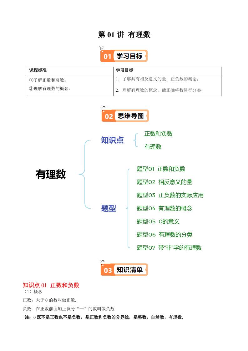 第二章第01讲 有理数(原卷版)