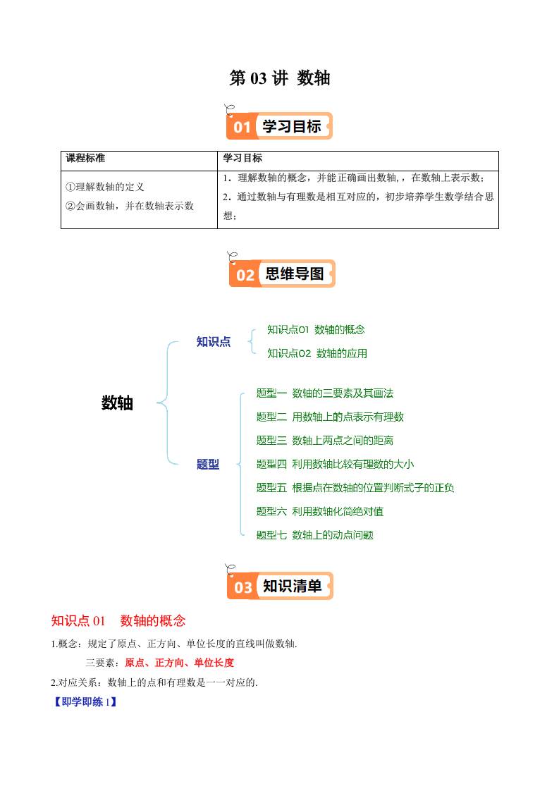 第二章第03讲 数轴(原卷版)