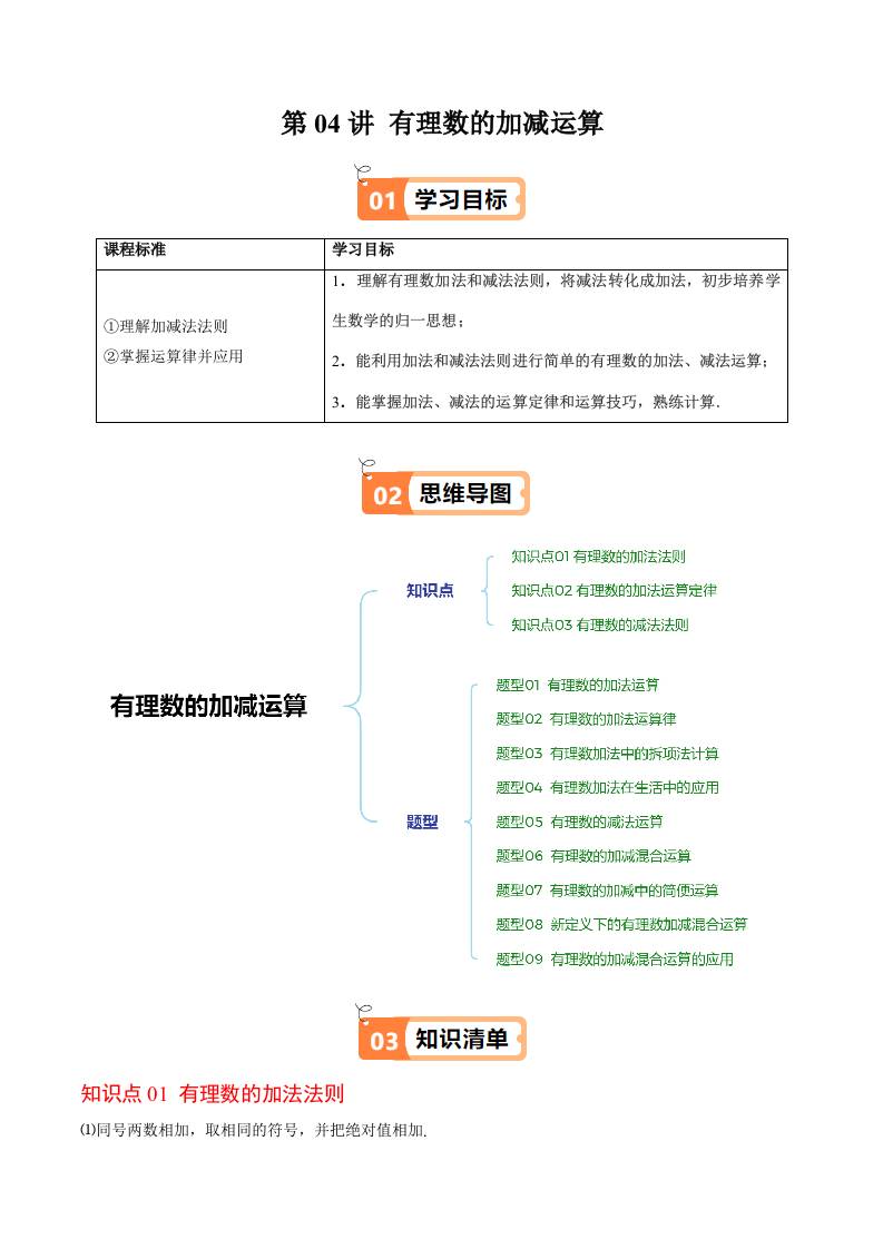 第二章第04讲 有理数的加减运算(原卷版)