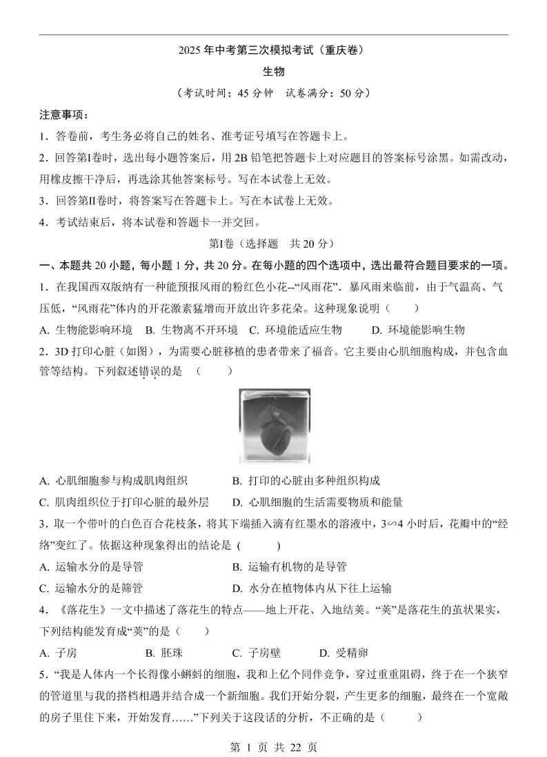 (甘肃卷)2025年生物中考第一次模拟试卷(全解全析)