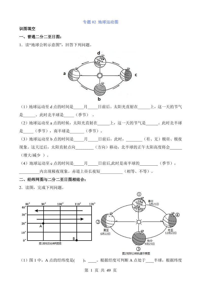 专题02 地球运动图