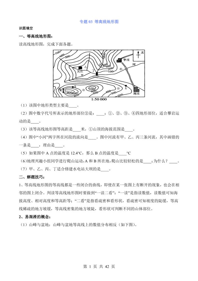 专题03 等高线地形图