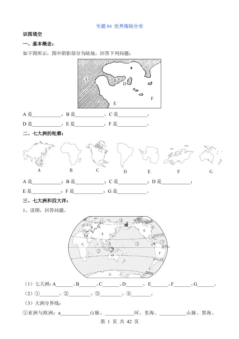 专题04 世界海陆分布