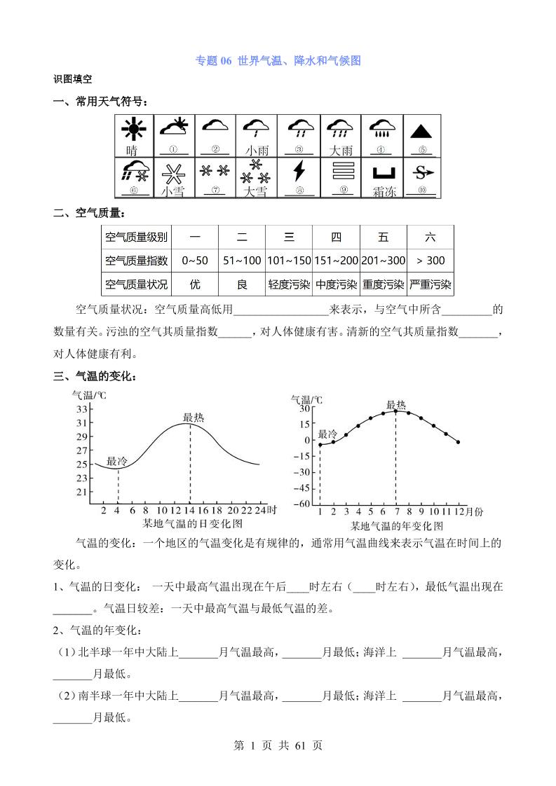 专题06 世界气温、降水和气候图