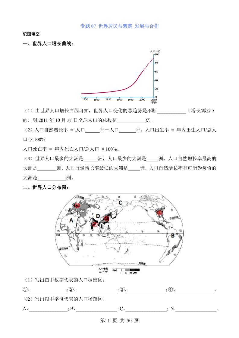 专题07 世界居民与聚落 发展与合作
