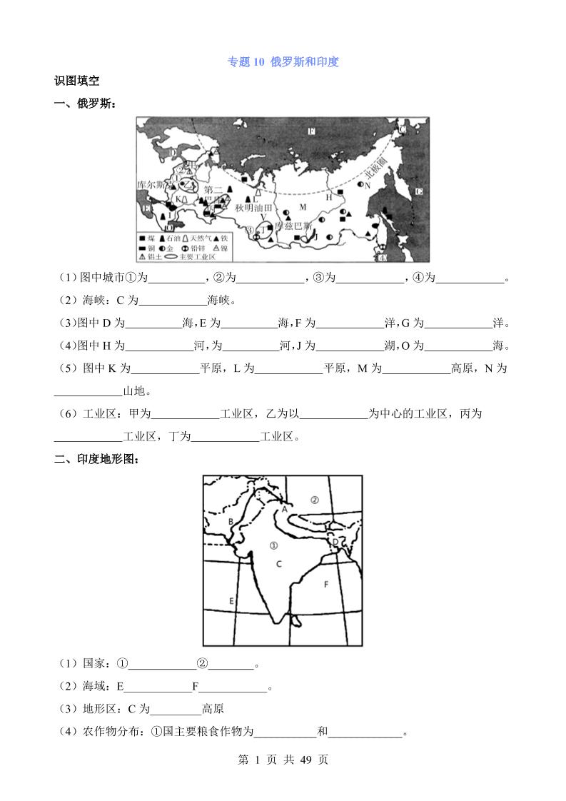专题10 俄罗斯和印度