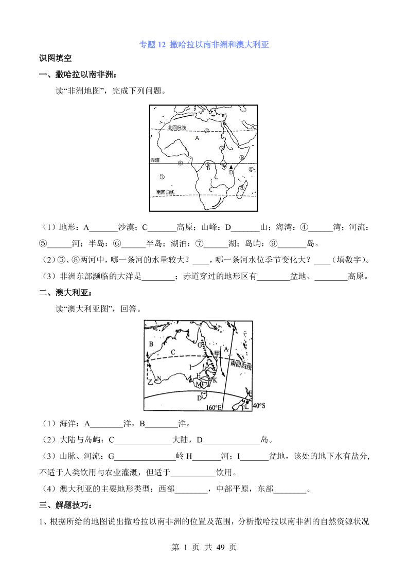 专题12 撒哈拉以南非洲和澳大利亚