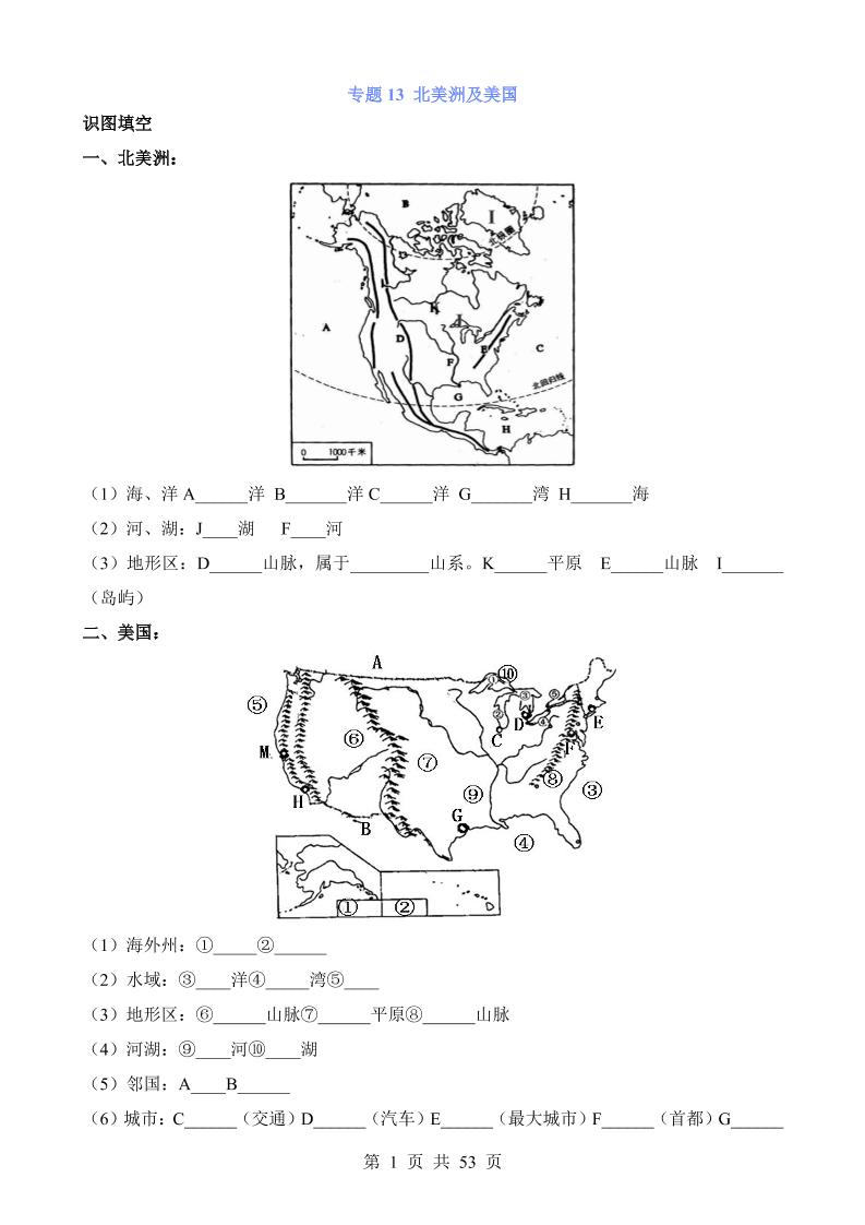 专题13 北美洲及美国