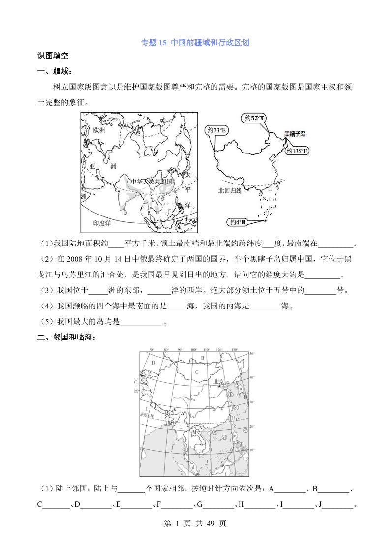 专题15 中国的疆域和行政区划