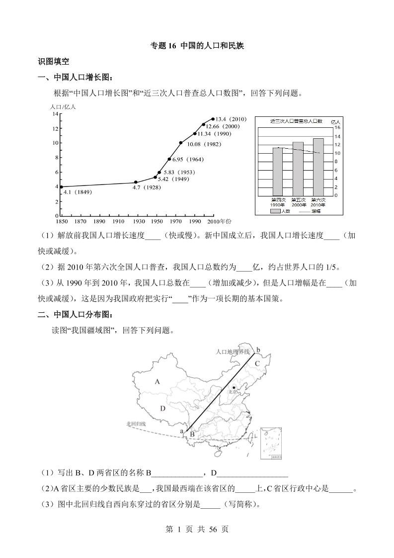 专题16 中国的人口和民族