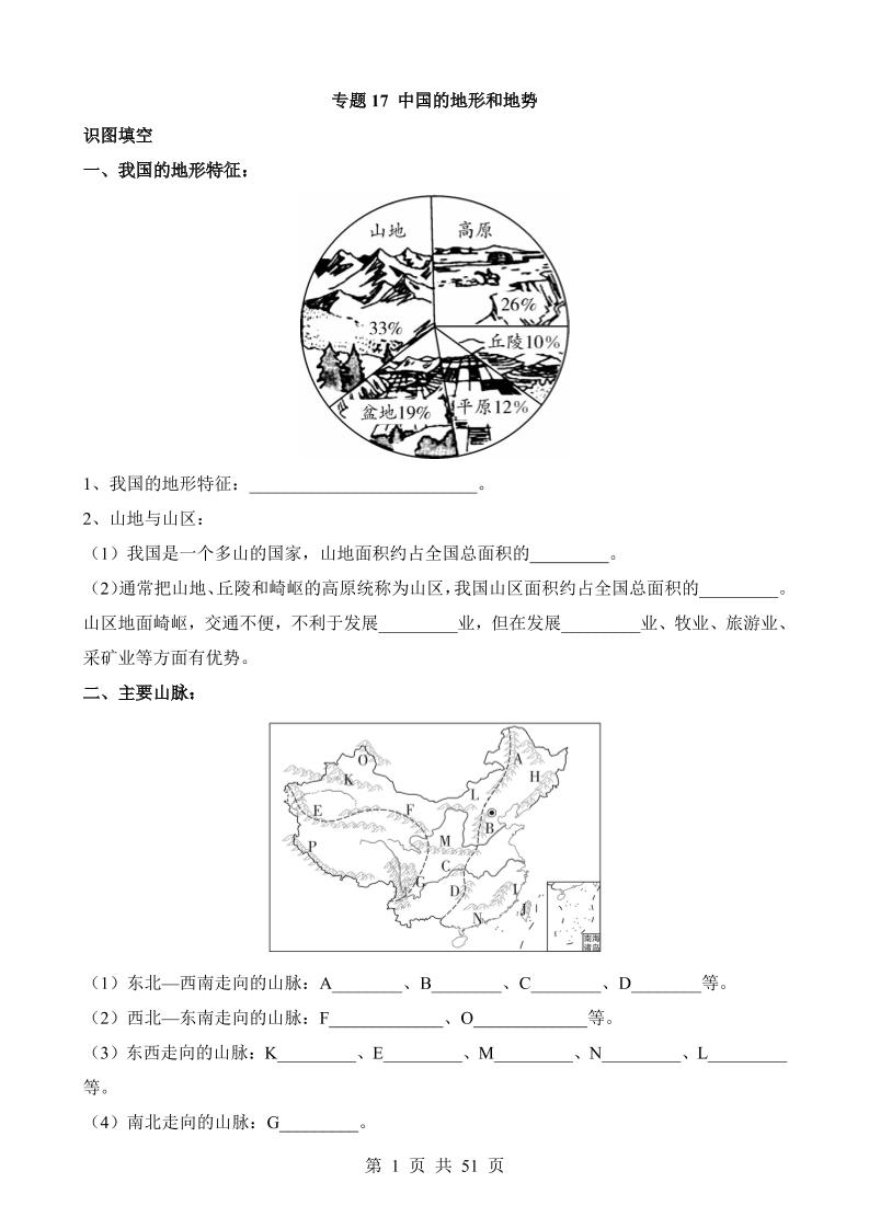 专题17 中国的地形和地势