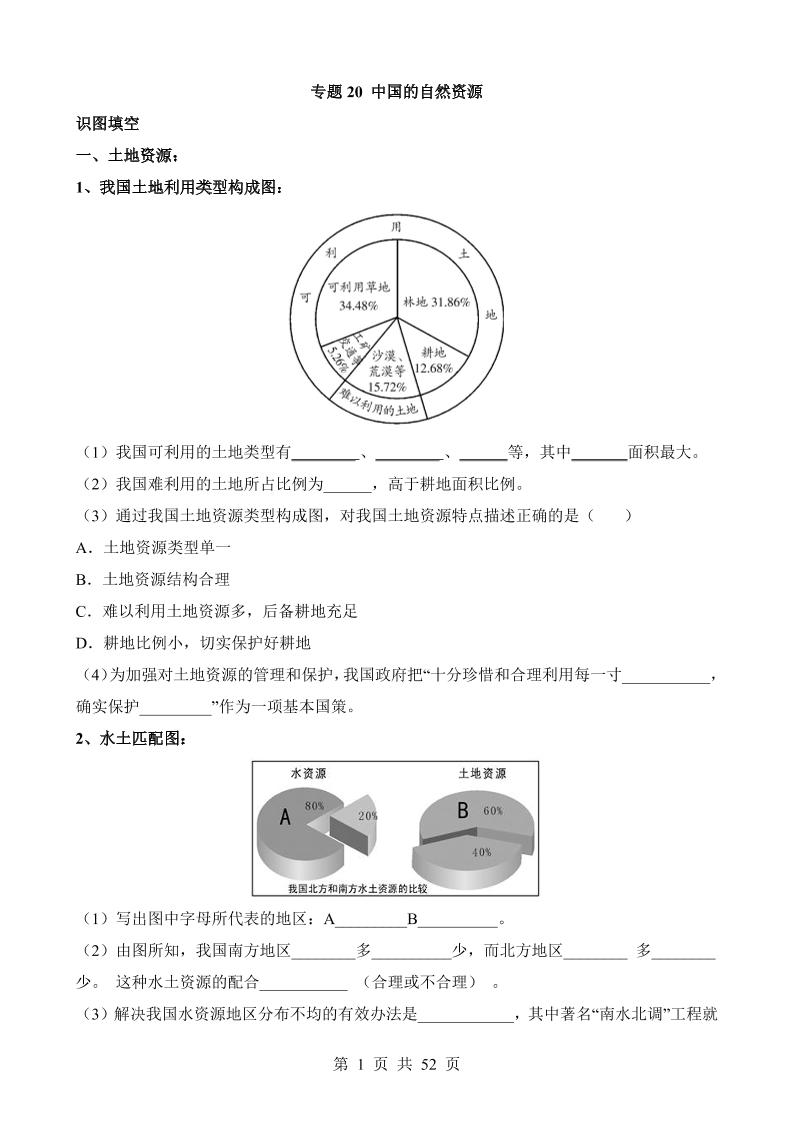 专题20 中国的自然资源