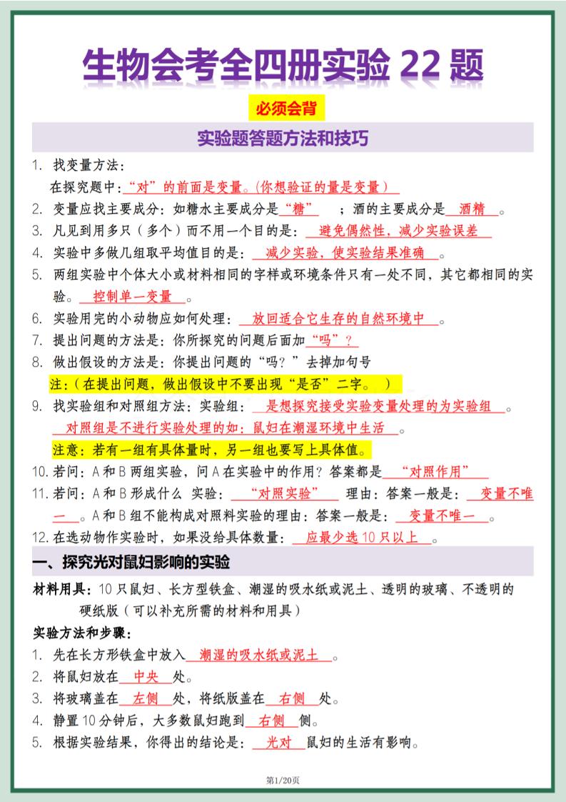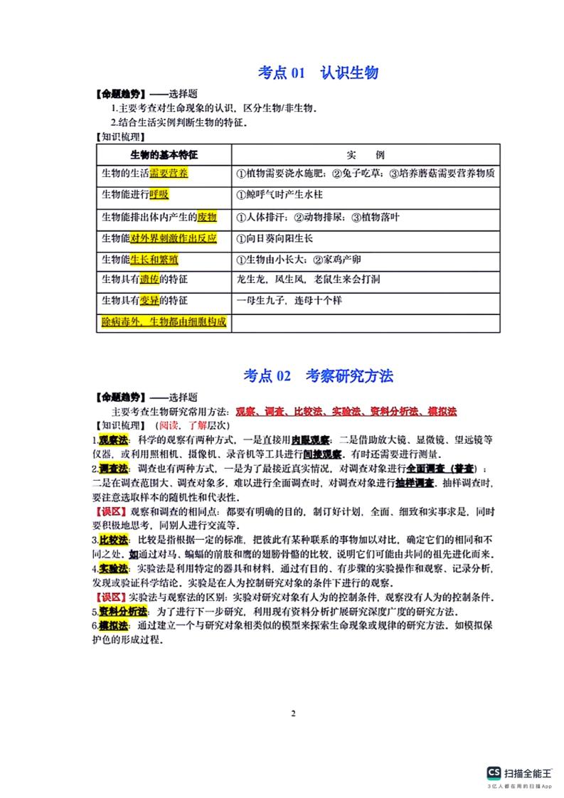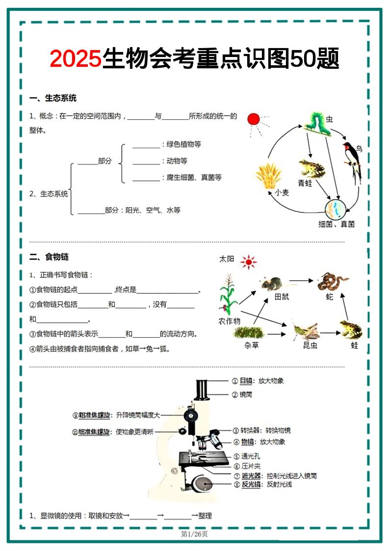 2025中考生物重点知识梳理汇总小纸条【答案】