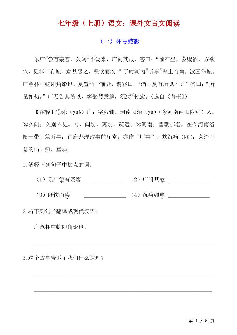 七上语文全册【古诗词&文言文】注释+译文+解析