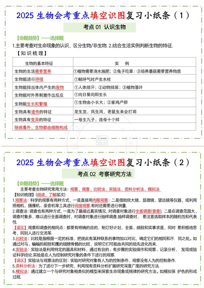 (1-14章空白)2025生物会考重点填空识图复习小纸条(36)