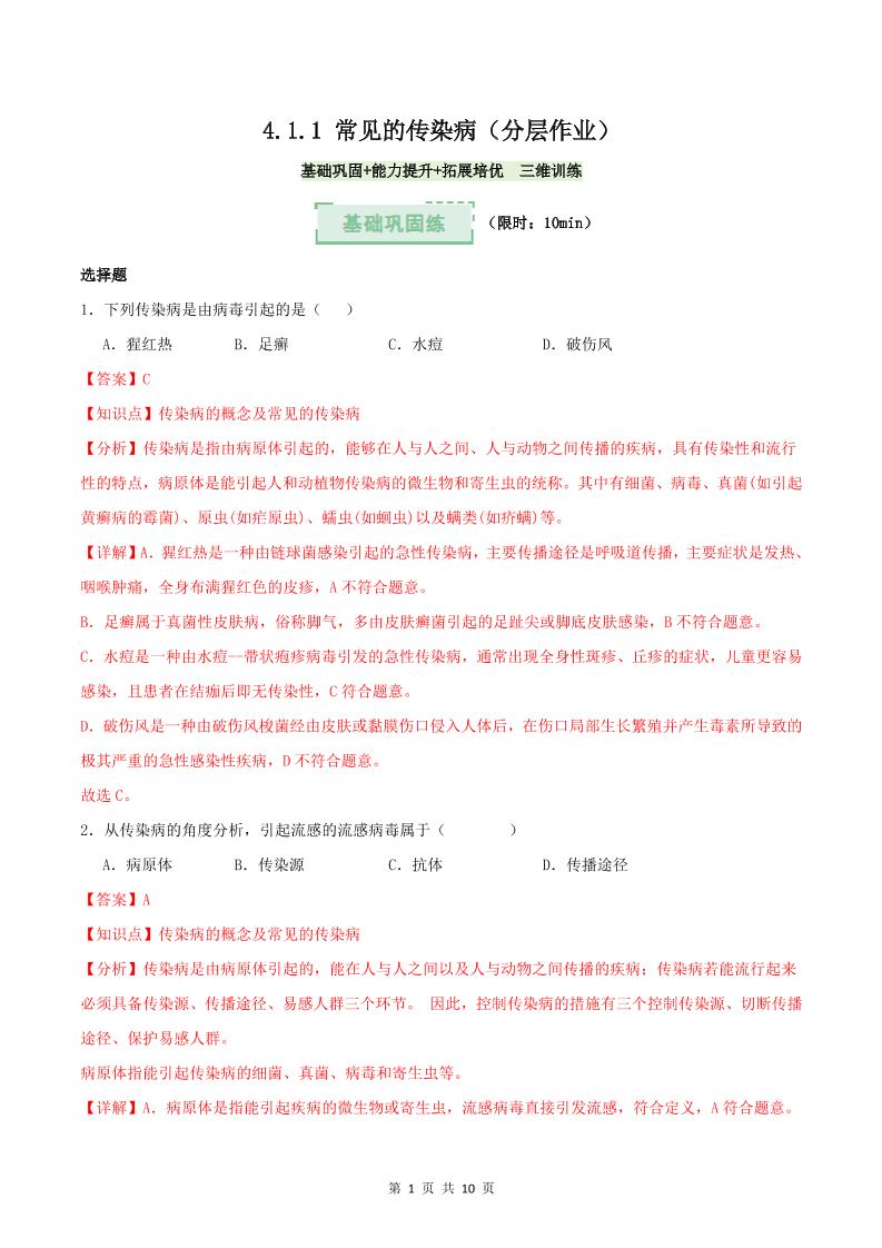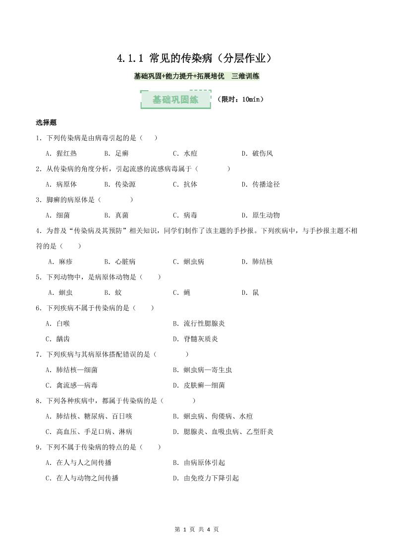 4.1.1 常见的传染病(分层作业)(原卷版)