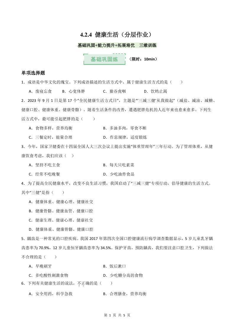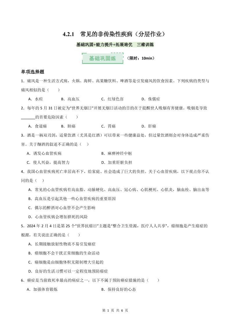 4.2.1 常见的非传染性疾病 (分层作业)(原卷版)