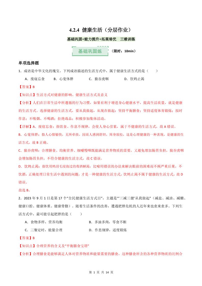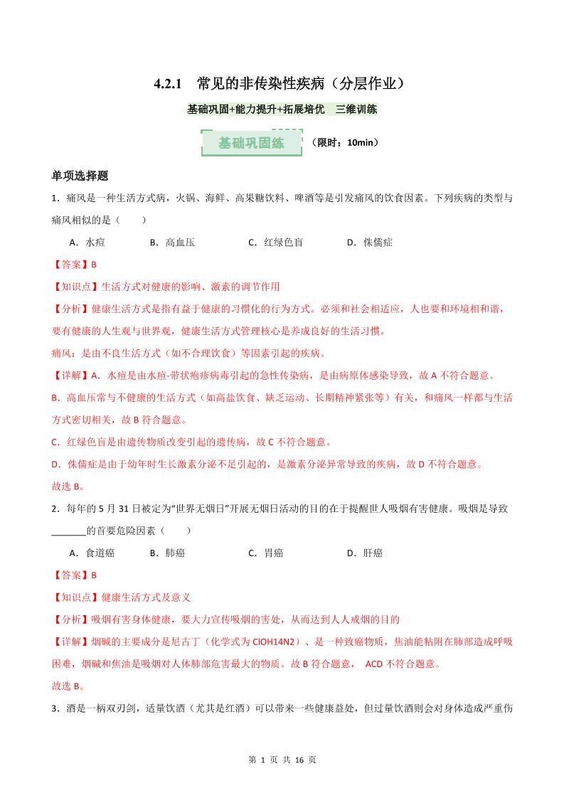4.2.1 常见的非传染性疾病 (分层作业)(解析版)