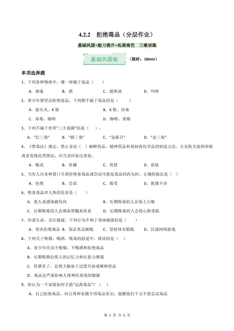 4.2.2 拒绝毒品(分层作业)(原卷版)
