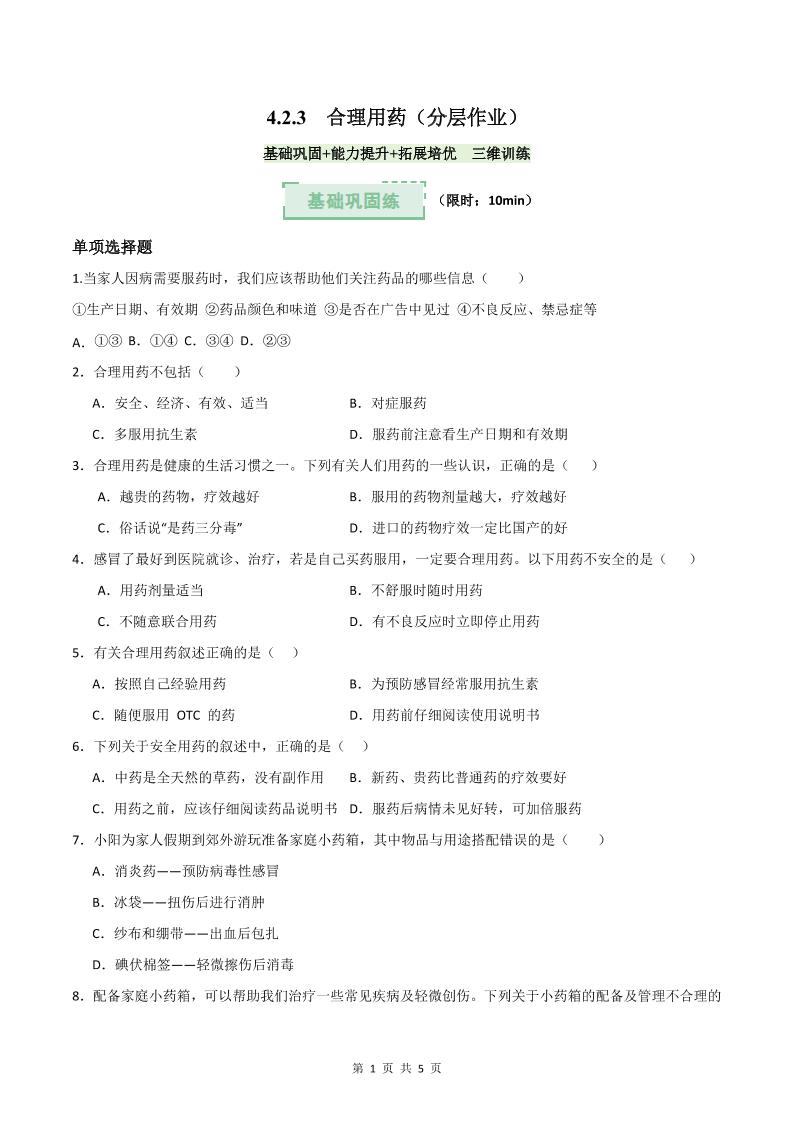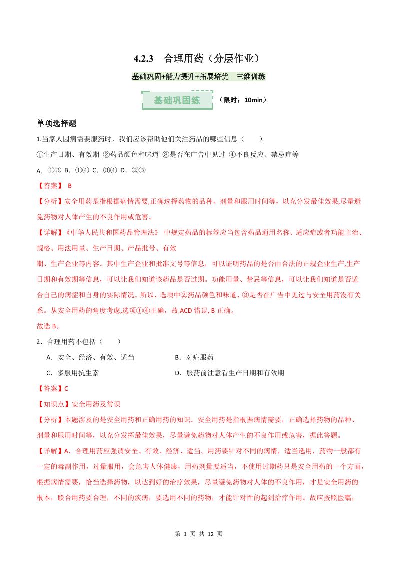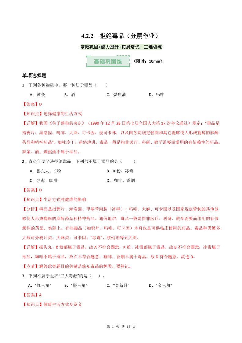 4.2.2 拒绝毒品(分层作业)(解析版)