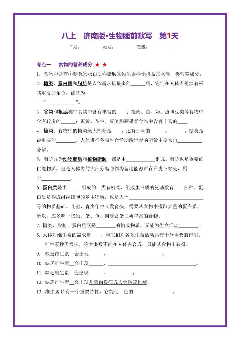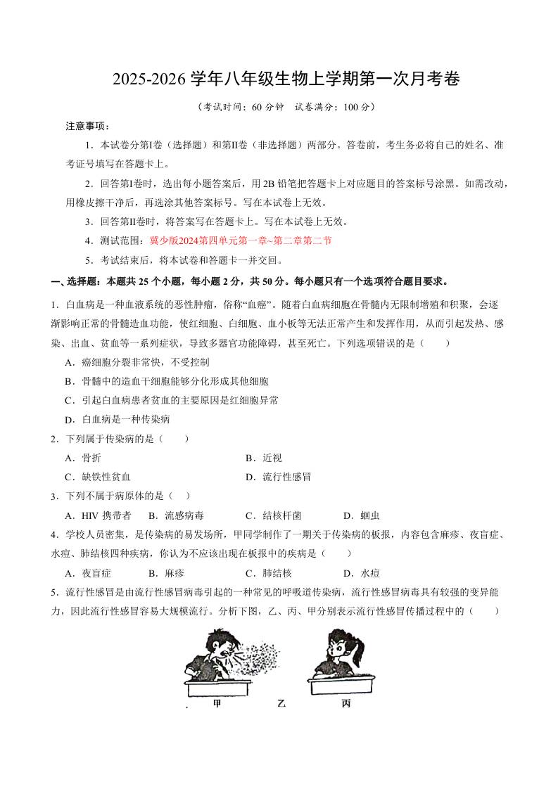 八年级生物第一次月考卷【测试范围:冀少版2024第一单元第一章~第二章第二节】(考试版)8