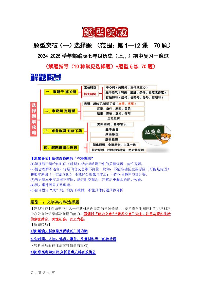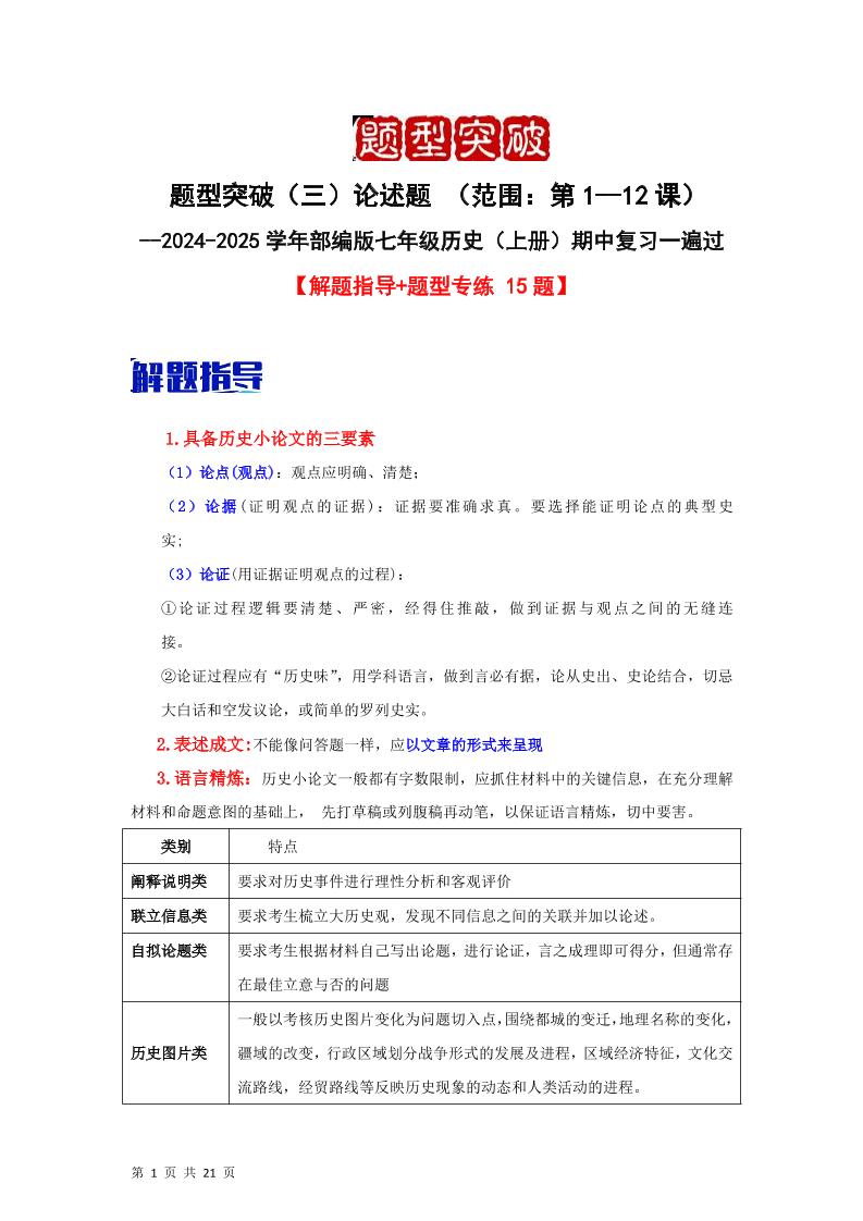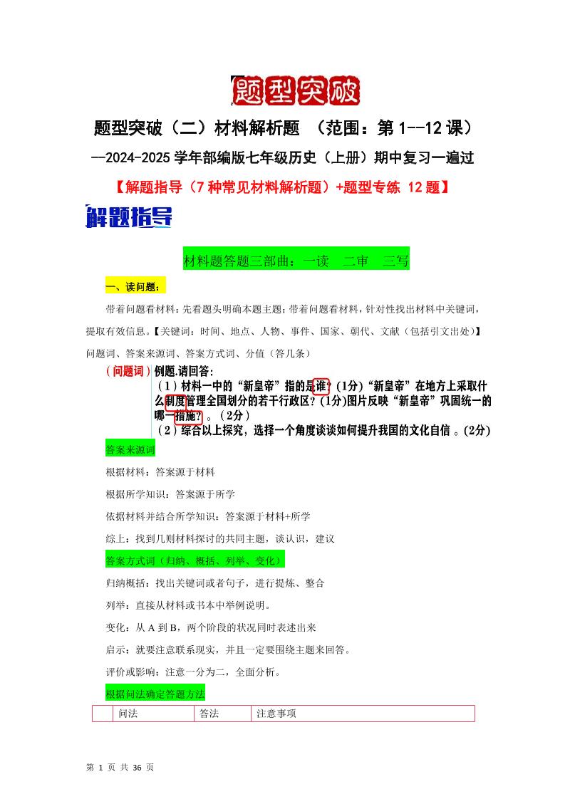 题型突破(2) 材料解析题(第1~12课) - 答案