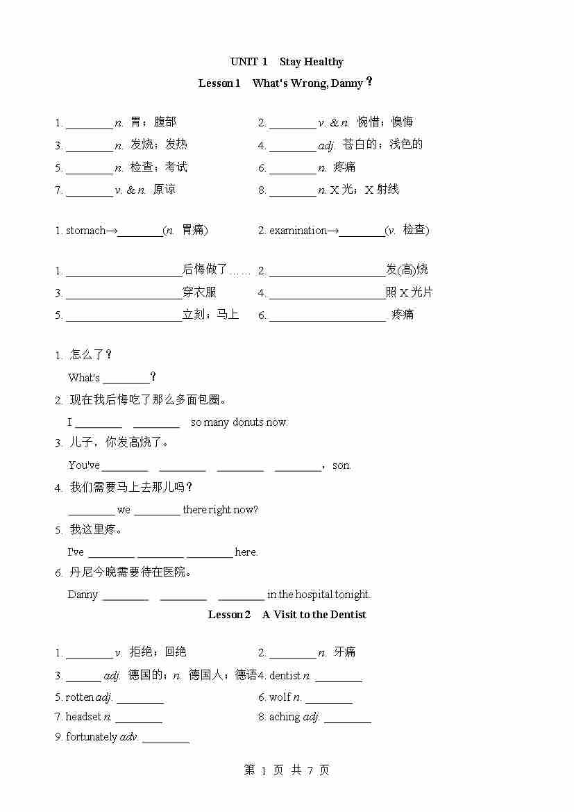 Unit 1 基础知识默写