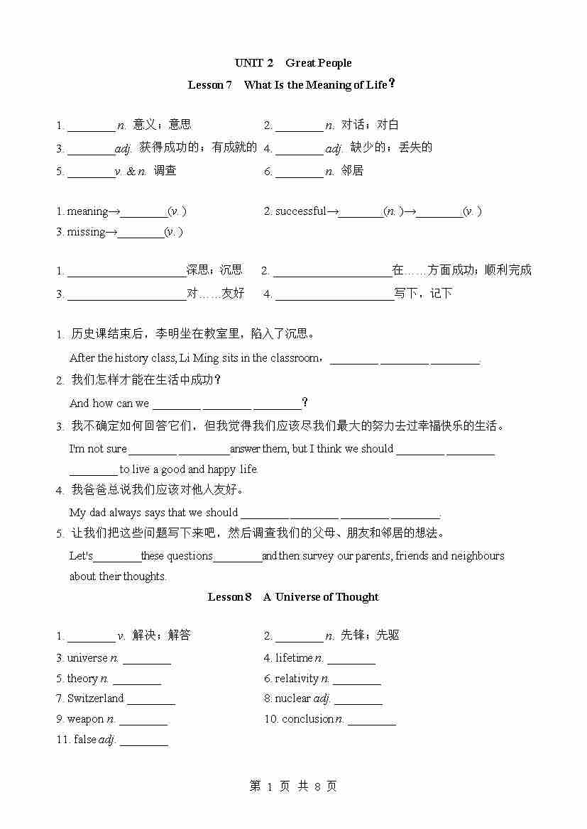 Unit 2 基础知识默写