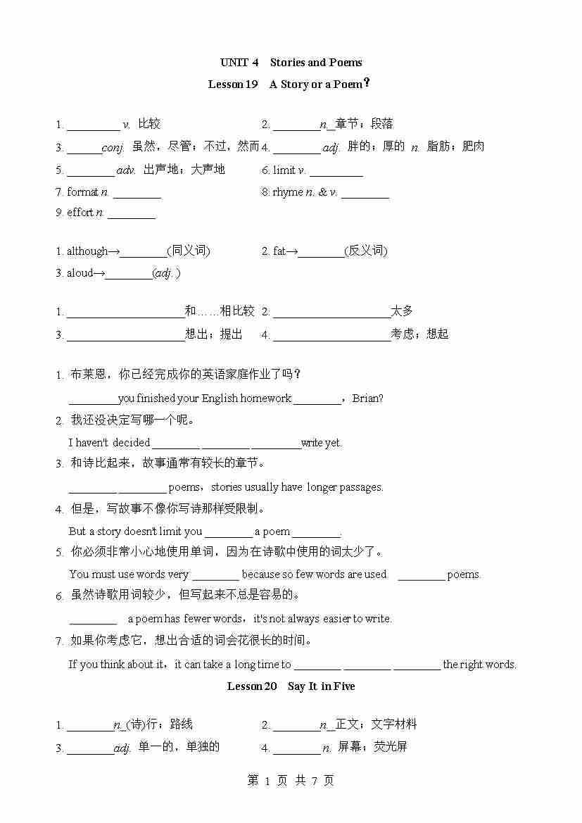 Unit 4 基础知识默写