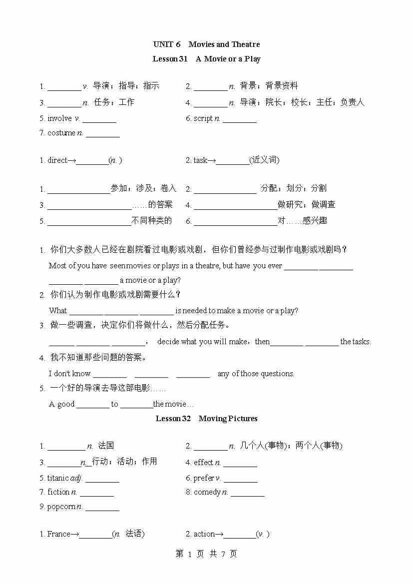 Unit 6 基础知识默写