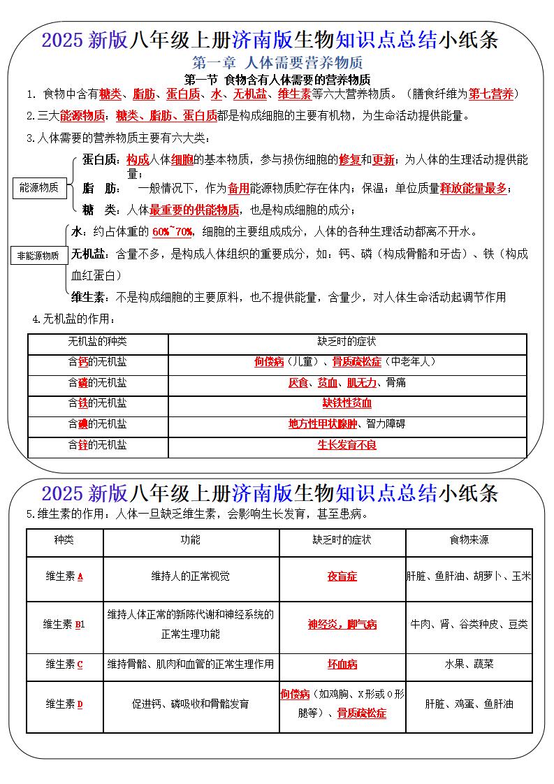 【济南】八上版生物知识点总结(背诵版)