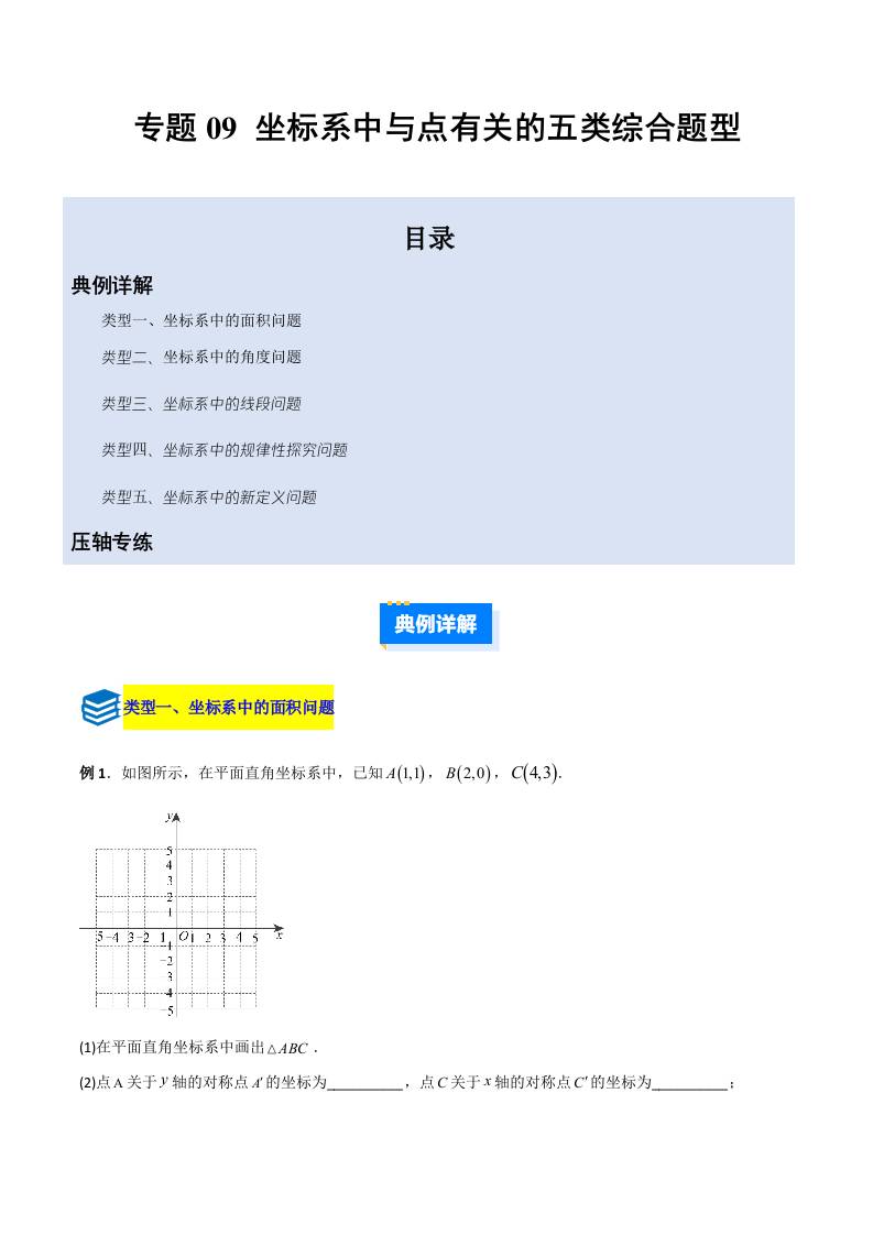 专题09 坐标系中与点有关的五类综合题型(压轴题专项训练)(学生版)