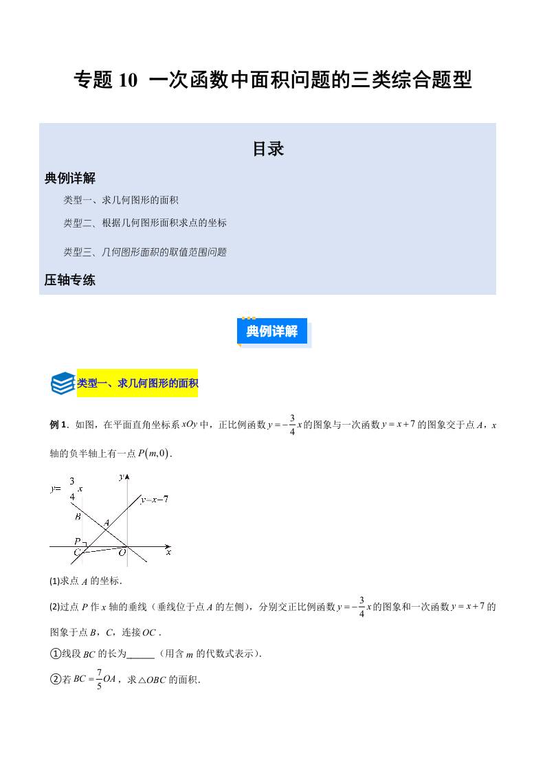 专题10 一次函数中面积问题的三类综合题型(压轴题专项训练)(学生版)