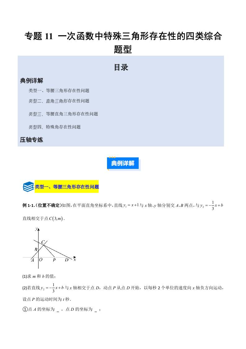 专题11 一次函数中特殊三角形存在性的四类综合题型(压轴题专项训练)(学生版)