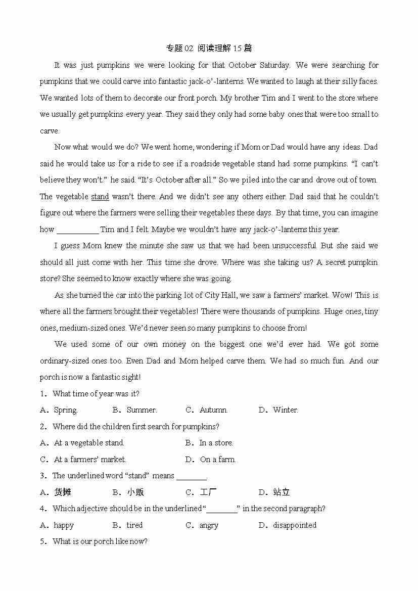 专题02 阅读理解15篇