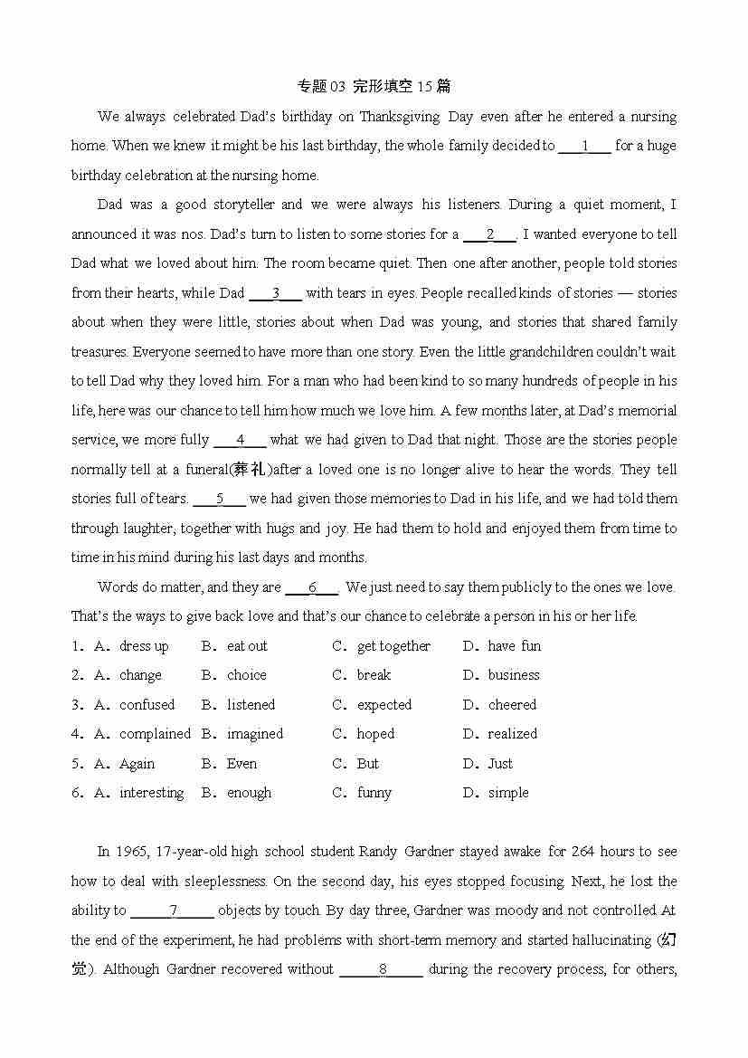 专题03 完形填空15篇