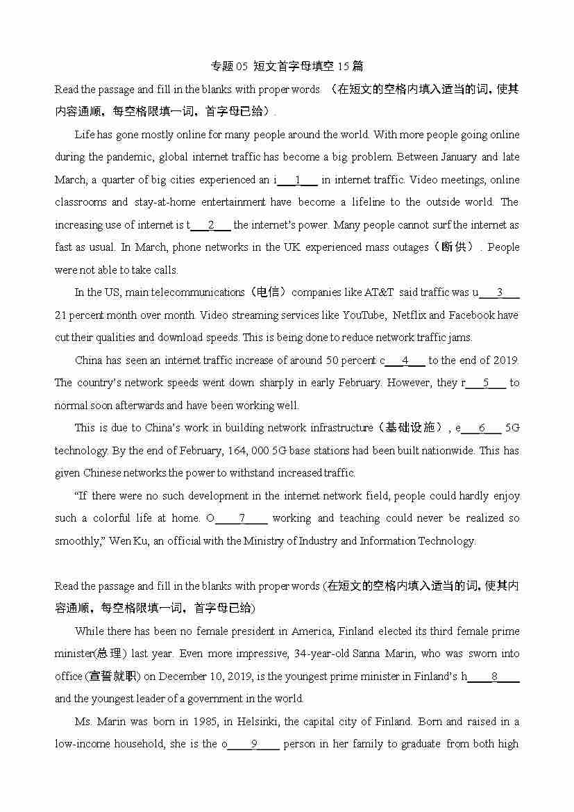 专题05 短文首字母填空15篇