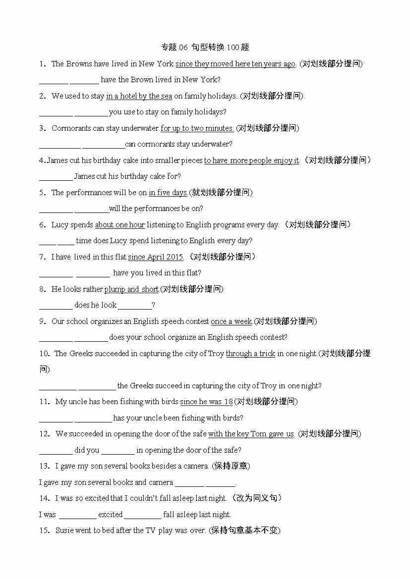 专题06 句型转换100题