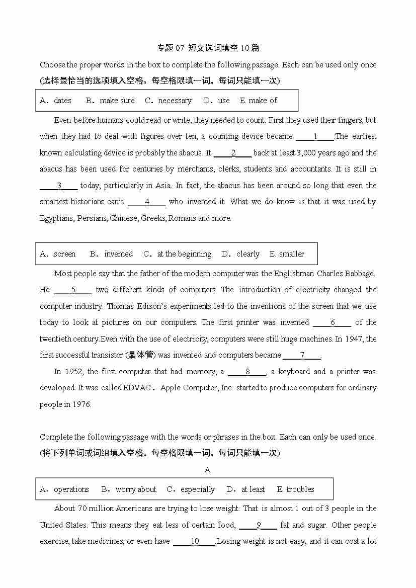 专题07 短文选词填空10篇