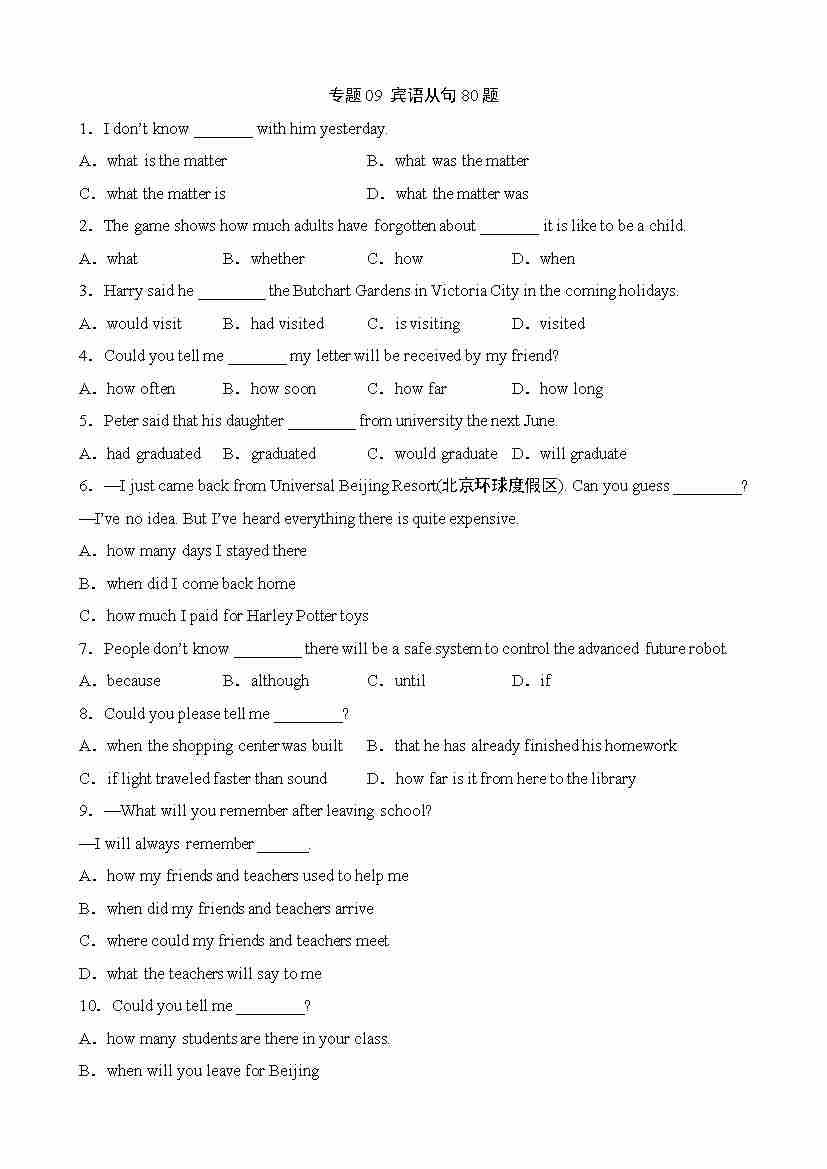 专题09 宾语从句80题